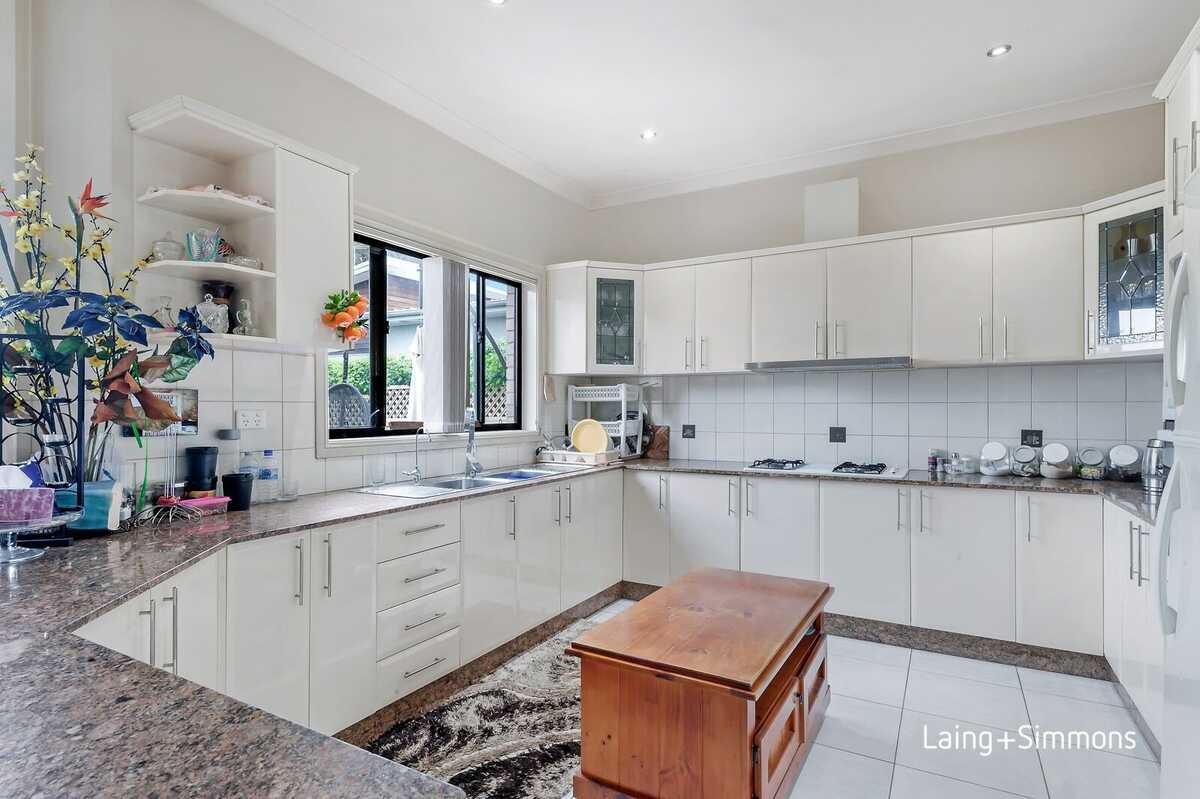 - Open modern kitchen and dining with gas cooking appliances
